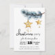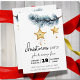 Dans la magie des fêtes, cette invitation ouvre la voie à une fête pleine de joie et de bonheur. Une branche de pin capricieuse, délicatement ornée d'étoiles dorées chatoyantes, qui scintillent chacune avec la promesse d'un splendide rassemblement. Le design dégage un air de gaieté et de sophistication, capturant parfaitement l'essence de la saison des fêtes. La branche du pin, avec ses aiguilles verdoyantes, est un symbole de joie éternelle, tandis que les étoiles dorées apportent une touche de fantaisie et de magie. Chaque étoile brille d'une lueur d'or festive. Ajoutez les détails de votre fête à l'avant de cette invitation de fête de vacances et il y a de la place pour ajouter des détails supplémentaires pour vos invités au verso. Profitez de vos festivités.