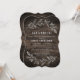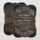 Cette carte d'invitation en bois à branches courbées pour une fête est parfaite pour un événement moderne. Le design chic campagne présente la silhouette de deux branches florales disposées pour composer une couronne rustique de feuilles sur un fond en bois.