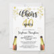 Célébrez n'importe quel anniversaire d'âge avec cet âge modifiable CHEERS TO # ANNÉES invitation d'anniversaire en noir et or avec des vedettes d'or en cours de guirlandes. Typographie manuscrite moderne et bouteilles de champagne. Idéal pour les anniversaires adultes pour lui ou elle. Contactez le concepteur via Zazzle Conversation ou makeitaboutyoustore@gmail.com si vous souhaitez modifier ce design, sur un autre produit ou pour coordonner des éléments.