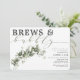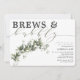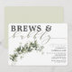 Fêtez votre fiançailles avec style grâce à notre simple Invitation Faded Green Engagement Party. Avec une aquarelle illustrant la verdure et l'eucalyptus, un en-tête qui apparaît avec la phrase "Brews & bubbly" dans une combinaison élégante et la typographie calligraphique.