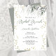 This Bridal Brunch Gold Stars Invitation is designed with flowing green leaves and gold stars accents to honor the Bride. The front text includes: The Bride's First and Last Name, Brunch Date, Time, and RSVP - Host Details. The reverse side is a matching soft green background. To personalize, simply insert your details into our easy template, replacing the sample text.