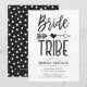 Une invitation de brunch nuptial adaptée à votre tribu de mariée de confiance. Elle présente un look classique à thème noir et blanc avec les mots bride tribe écrits en police de style manuscrit. Entre les deux mots se trouve une flèche tribale perçant un cœur.