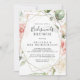 Cette invitation de brunch aux femmes d'honneur vert or géométrique est parfaite pour un wedding shower moderne. Le design se compose d'un feuillage botanique vert et or peint à la main, avec des fleurs roses, rousses et blanches, qui ornent un cadre géométrique élégant.