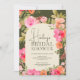 Invitation vos invités à célébrer avec cette invitation vibrante et élégante à la douche nuptiale boho, avec un audacieux arrière - plan vert de forêt foncée orné de fleurs d'aquarelle peintes à la main dans les tons rose, pêche et vert. La typographie moderne et ludique et l'écriture élégante font de cet invitation un lieu idéal pour une douche de mariée branchée et joyeuse. Le design est personnalisable, vous permettant de personnaliser facilement les détails pour s'adapter à votre événement. Faites une déclaration audacieuse avec cette invitation captivante qui capture l'esprit d'une célébration joyeuse.