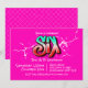 Une invitation graffiti rose vif désordonné convenant à un enfant de six 6 ans.