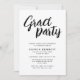 Invitation Brosse chic moderne Script Black & White Grad Part