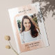 Célébrez le jalon de votre diplômé préféré avec une carte de faire-part de remise de diplômes en photo frappante. Ce faire-part de la carte de graduation offre un design assez minimal avec des coups de pinceau d'aquarelle rose pêche avec une pièce pour une image verticale senior de votre belle grade! Personnalisez la carte en ajoutant votre photo, nom et année. Ajoutez un message supplémentaire au dos à l'aide du modèle. La couleur inverse gris foncé correspondante peut être facilement modifiée. Autres couleurs disponibles.
