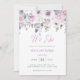 Ces magnifiques invitations à un mariage fleuri sont ornées d'aquarelle, de mauve douce et de fleurs blanches avec beaucoup de feuilles botaniques et d'élégantes calligraphies violettes claires.