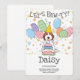 Faites votre Cockapo blanc & chocolat / Cavapoo anniversaire spécial avec notre adorable design sur le thème du chien avec un casquette de fête et ballons colorés. Personnalisez cette amusante invitation d'anniversaire avec le nom et l'âge de votre chien pour une fête de queue !