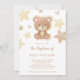 Nos magnifiques invitations au baptême sont accompagnées d'un ours en peluche brun portant une fleur rose dans sa fourrure. L'ours est entouré de coeurs et d'étoiles brun et jaune élégants. Personnalisez facilement avec vos propres informations. Tout le texte est entièrement personnalisable. Achetez en téléchargement instantané ou faites expédier des invitations directement à votre domicile.