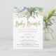 Ces invitations élégantes et minimalistes de brunch de bébé comportent la verdure à la mode d'aquarelle et le feuille botanique sur un arrière - plan blanc propre avec le manuscrit moderne d'or de faux. Elles sont neutre de genre si parfait pour une fille ou un garçon.
