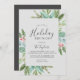 Cette carte d'invitation grise brun de Noël verdoyante est parfaite pour un simple événement de vacances. Le design des vacances d'hiver est composé d'eucalyptus vert sauge doux et de plantes modernes avec des sprigs de baies rouges classiques.