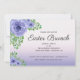 Cette invitation de Pâques Brunch présente une belle illustration florale violette accentuée de feuilles verts.