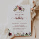 Ce brunch rustique à fleurs et cette invitation à la douche à bulles sont parfaits pour un wedding shower d'été. Le design est composé de fleurs d'aquarelle bordeaux, roses et rousses avec des feuilles verts dans un arrière - plan verni brun.
