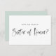 Demandez à vos amis et à votre famille de faire partie de votre mariage avec cette carte féminine et moderne "Serez-vous ma soeur d'honneur ?". Il est décoré de lettres de brosse couleur fusain foncé et d'un dos couleur menthe. Personnalisez par le nom et le message du destinataire.