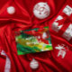 Cette carte de voeux de Noël moderne présente une couleur de Noël abstrait arrière - plan de coup de pinceau, une bordure blanche simple rouge Festif, vert, or et blanc couleurs. Texte personnalisé en noir et blanc.