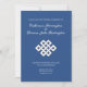 The knot, one of the eight auspicious symbols in Buddhism, is perfect for a wedding ceremony, as it represents connection with everything and also stands for happiness, harmony, and a long life. The blue symbolizes good fortune and sublimity and, together with the knot, forms a wonderfully symbolic unity for this invitation card.