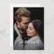 Budget Moderne Calligraphie Deux Photo QR Code Faire-part de mariage présente une calligraphie audacieuse et moderne sur un faire-part de mariage photo à fond saigné. Cette invitation est de taille plus réduite et sur un papier économique.
