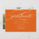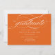 Budget Orange Moderne Élégant Script Black White Graduation Party Invitation comporte un script magnifique et élégant, avec les détails de votre fête, et votre photo complète au dos.