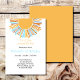 Première visite budgétaire autour du soleil, rétro boho soleil première invitation d'anniversaire. Cette invitation économique porte le mot "Premier voyage autour du Soleil !" Avec un rayon de soleil jaune-orange et bleu clair. Facile à personnaliser. Utilisez l'outil de conception pour modifier les polices, le texte, la taille et la couleur pour le rendre unique. Voir notre collection Bohemian Sunshine pour assortir papeterie et personnaliser les cadeaux.