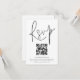 Code QR Script Wedding RSVP. Un boîtier d'option pratique pour demander à vos invités de scanner votre code QR vers votre site Web mariage à RSVP. Une typographie stylisée en noir pour le titre principal RSVP complétant le reste du texte que vous pouvez facilement personnaliser.