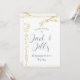 Célébrez avec style grâce à cette invitation élégante, mettant en vedette un superbe design représentant une bouteille de champagne qui saute et des bulles de champagne en or scintillant. Parfaite pour tout événement ou occasion spéciale, cette invitation donnera le ton pour une réunion sophistiquée et glamour. Les accents dorés luxueux et l'imagerie festive transmettront un sentiment d'excitation et de célébration à vos invités, les rendant impatients de se joindre aux festivités. Faites de votre événement un moment inoubliable avec cette invitation chic et stylée. Levez votre verre aux bons moments à venir !