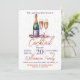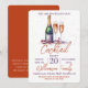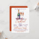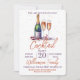 Une invitation à une fête cocktail . Conception d'une bouteille de champagne pétillant , vin pétillant et 2 verres à flûte. Une belle conception de célébration avec du texte orange brûlé et violet vous invitant, vous et vos invités, à rejoindre une fête de boissons de vacances festive. Facile à personnaliser avec vos propres détails de fête.