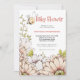 Un joli design amusant avec une abeille sucrée au sommet et de grandes fleurs en bleu et blanc bordant les bords gauche et bas. Le Baby shower d'en-tête principal est dans un style artistique fixe en corail et le reste du texte que vous pouvez facilement personnaliser à vos propres détails. Vous pouvez également modifier les couleurs du texte si vous le souhaitez via l'option Cliquer pour Customiser plus ainsi que les couleurs arrière - plans de chaque côté via l'option customiser plus.