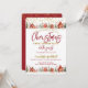 Un personnel de bureau sublime travaille à l'invitation de Noël ou de fête de Noël. Ce design glamour de vacances doré et rouge présente une scène de rue enneigée avec des arbres. Facile à customiser avec vos propres détails d'entreprise, de personnel ou de bureau.