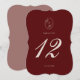 Burgundy Die-Cut Wedding Table Number in a sculpted scalloped shape — a statement detail for elegant fall and winter receptions. Inspired by Old Money aesthetic, Quiet Luxury, and Heritage Estate wedding style. Perfect for couples who love refined, elevated tablescapes. Style with velvet linens, candlelight centerpieces, and deep burgundy florals to create a dramatic and luxurious reception setting.