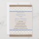 Ce burlap rustique et vintage invitation à la douche nuptiale en dentelle blanche fera le faire-part parfait pour toute future mariée ! Le design est composé d'un bel arrière - plan rustique à effet burlap avec une dentelle blanche vintage romantique et une garniture à effet ruban bleu. Ces invitations peuvent être personnalisées pour votre occasion spéciale et feraient le faire-part parfait pour tout mariage rustique, douche nuptiale, fête de fiançailles, fête d'anniversaire et bien plus encore. *Veuillez noter que Zazzle ne vend que des invitations imprimées, de sorte que ces invitations n'ont pas de matériel de burlap, dentelle ou ruban.