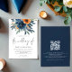 Invitation Burnt Orange Navy Florals QR Code Wedding