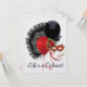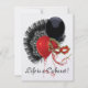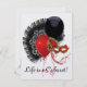 Une perle blanche brille une invitation de 5,5 po x 4,25 po avec l'image d'un ventilateur à plumes noires, des ballons rouges et noirs, et un masque rouge. Texte facultatif. Le dos a l'image d'un ballon rouge qui dérive. Voir confettis assortis, ballotin, étiquette de faveur, sacs-cadeaux moyens, autocollant rond et autocollant vinyle taillé sur mesure. Voir l'ensemble de la collection Cancan Invitation dans les INVITATIONS | Section Invitations et Cartes.