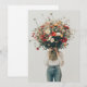 Une personne habillée en jeans décontractés et d'un simple chapiteau blanc tient un énorme bouquet de fleurs sauvages qui obscurcit complètement leur visage. Le grand agencement coloré de marguerites, de pavots et autres floraisons vibrantes contraste avec l'arrière - plan et la tenue minimaliste, créant un visuel saisissant qui met en valeur la beauté de la nature. La scène dégage une sensation de fantaisie et de sérénité, car les fleurs occupent le devant de la scène, symbolisant la croissance, la vie et la simplicité.
