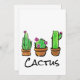 Sur l'illustration de la three cute cacti with pink flowers in little terracottes pots.