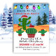 Une invitation à la fête de Noël avec un cactus rêvant d'un Noël blanc portant un chapeau de Père Noël, au milieu du désert. Les lumières de Noël donnent à cet invitation une ambiance festive et amusante.