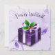 Invités Invitations à votre fête de vacances avec cet Invitation cadeau de Noël violet festif. Le design Invitation présente un cadeau de Noël violet vibrant orné de baies sèches et de flocons de neige tombant contre un élégant parchemin et arrière - plan feuille que vous pouvez personnaliser avec votre fête et RSVP détails. Autres cadeaux et objets de vacances disponibles avec ce design aussi.