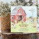 Conception de scène d'animaux de la ferme adorable avec la vache, le cheval, le cochon, la poule, le poussin et le mouton les plus mignons avec une grange rouge. Retournez notre carte pour voir un verso coordonné avec nos amis de la ferme mignons. Visitez notre boutique pour voir notre collection complète d'amis de la ferme
