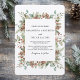 Célébrez votre jour spécial avec cette élégante invitation de mariage à la verdure hivernale, dotée d'un charmant cadre de cônes de pin aquarellés, de feuilles d'eucalyptus, de branches de cèdre et de botaniques hivernales douces. Le fond rustique inspiré du kraft ajoute une touche chaleureuse et naturelle, faisant de ce design un choix magnifique pour les mariages d'hiver, les célébrations de Noël, les cérémonies en forêt ou les lieux de réception de montagne cosy.
