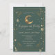 Lune céleste, cadre et étoiles sur fond vert. Parfait pour les mariages en soirée, les cérémonies en plein air ou tout couple souhaitant ajouter une touche cosmique à son jour spécial.
