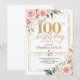 Invitation Cadre doré de verdure florale rose rustique 100ème