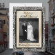 Fond en satin blanc cassé avec cadre noir et argent et votre photo personnalisée. L'accent de diamant et les modèles sont créés pour vous.