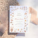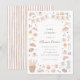 Café bébé baby shower invitations. This french bakery-themed baby shower invite features a hand-painted frame of sweet treats, bread, and coffee. The illustrations include croissants, pan au chocolat, cinnamon rolls, pies, cake, cupcakes, baguettes, cherries, bows, coffee beans, and more. Ideal for a baby is brewing, Parisian patisserie, or coffee shop themed baby shower event. Cards reverse to vertical watercolor stripes in a warm brown color. View the collection linked on this page for matching items or visit our store for more baby shower invitations.