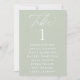 Elégante calligraphie blanche "table", avec les noms d'invités et le numéro de table, mariage tableau de sièges carte 5x7. La couleur Arrière - plan affichée dans la sauge poussiéreuse, peut être customisée. Conçu pour être coordonné avec notre collection botanique Dusty Sage.