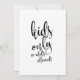 Un panneau de mariage élégant et moderne, avec le texte "Enfants uniquement, les adultes ne sont pas autorisés !" dans une police de caractères script extrovertie, la texture de pinceau ajoute une sensation spontanée et ludique. La couleur de fond peut être personnalisée en fonction de vos besoins et préférences, veuillez me contacter si vous avez une demande spéciale.