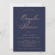 Cette élégante invitation à la douche par des couples élégants présente de nombreuses calligraphies d'or tourbillonnant et modernes sur un arrière - plan bleu nuit profond.