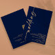 Calligraphie élégante Code QR Mariage Navy Or. Ajoutez votre code QR sur votre site web de mariage au verso, cela en fait une option pratique pour vos invités pour répondre et voir tous les détails sans avoir besoin de cartes de réponse et de détails séparées. Le script élégant est tourné vers la gauche, avec tous les détails stylisés à droite avec beaucoup d'espace blanc pour un style contemporain. Personnalisez facilement avec vos informations. Et changez la couleur du texte et de l'arrière-plan si vous le souhaitez via l'option "modifier davantage".
