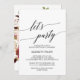 Cette carte d'invitation avec calligraphie élégante et fond floral est parfaite pour une soirée d'automne. Le design présente une typographie romantique et fantaisiste avec un magnifique bouquet de fleurs rose blush, marsala et bordeaux sur le fond.