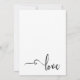 Cette carte allie l'élégance à la simplicité. Elle présente des éléments de typographie "Réception de mariage" et "et" qui ont été réalisés dans une belle police de caractères à l'aspect calligraphique présentant des volutes et des fioritures élaborées. Au verso, la même police a été utilisée pour créer une image représentant le simple mot "amour". Tout le texte modifiable apparaît dans une police de caractères sans empattement polyvalente qui peut être modifiée si vous le souhaitez. Vous pouvez changer la couleur de fond selon vos préférences. // 32 //