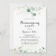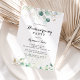 Cette calligraphie florale d'or rustique invitation à la fête de réchauffement est parfaite pour une simple nouvelle fête de maison. Cette conception artistique présente des feuilles d'or dessinées à la main et des feuilles d'aquarelle vert d'eucalyptus, une beauté naturelle inspirante.